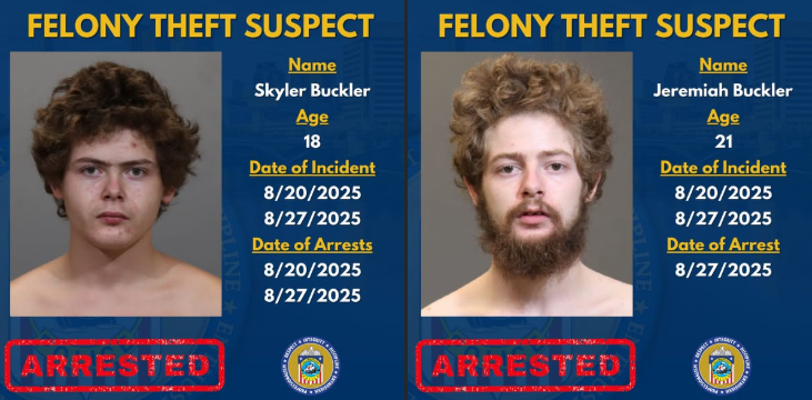 Investigators said they believed Buckler was likely to re-offend and began monitoring his vehicle. In the early hours of Aug. 27, officers conducted a traffic stop and detained Buckler and Jeremiah Buckler. Inside the vehicle, police recovered numerous suspected stolen tools, including a Spectra Geospatial Rover high-precision surveying receiver valued at $30,000 and Milwaukee tools worth $654.03.